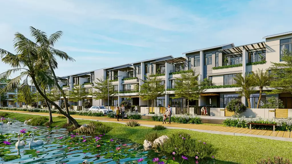 Phối cảnh dãy nhà ở liên kế view sông tại Dự án BGI Diamond Bay.